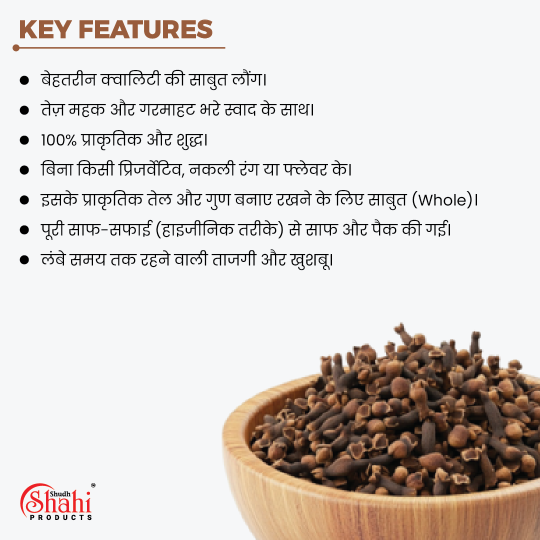 Add strength and sophistication to your recipes with Shudh Shahi Laung Deluxe—a premium spice that defines purity and tradition.